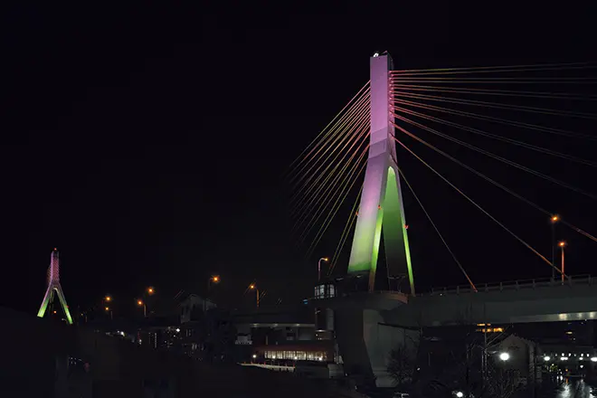 開港400年を迎える青森港のシンボル、青森ベイブリッジをより魅力的に照らし、潤いのある景観を演出