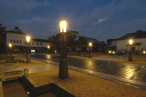 園内には日本庭園に調和する照明のかたちに留意した石材塗装袴付の照明柱が配され、近世武家文化が体感できる庭園周辺をハイラックス2500Kを光源とする暖かみのある光で、やさしく照らし出しています。