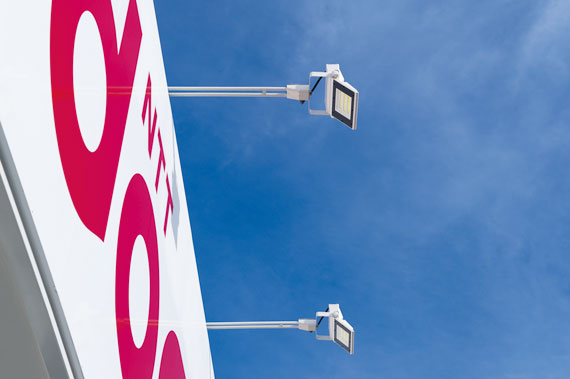 高出力・高効率のLED投光器をサイン照明に使用し、大幅な節電に貢献