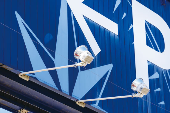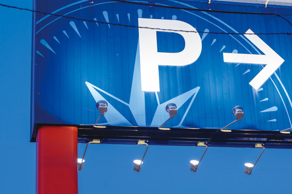 丸形LED投光器「レディオック フラッド LA」でサインポールを照らし、消費電力の大幅削減と明るく見やすいサイン照明を実現