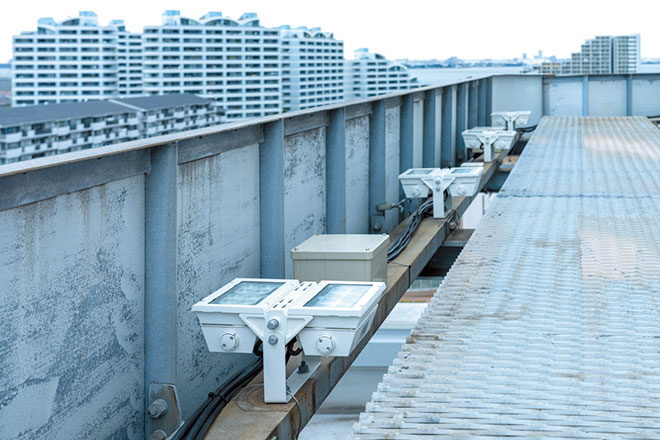 夜間も賑わいをみせる商業施設、ニューコースト新浦安さまのサインボードを照らす照明器具のLED化改修工事では、既設と同等の明るさを確保しつつ、光のむらを抑制するLED投光器として、「レディオック フラッド アーバンビュー 縦長配光タイプ」を選定しました。消費電力166.1Wで、既設投光器のメタルハライドランプ400Wと比較して約60%の省エネを実現するとともに、明るさも約47%向上し、視認性に優れた光でサインボードを均一に照らし出しています。また、軽量でコンパクトな同器具は電源ユニット一体形のため、別置電源ユニットのスペース確保や本体と電源ユニットとの結線も必要なく、すっきりとした設置状況となったことを評価いただきました。光束維持時間60000時間と長寿命で省エネはもとより、省メンテナンスにも貢献しています。