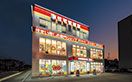 店舗サインや壁面を照らす照明については、サイン広告用LED照明器具「レディオック カトラス type-S・type-L」をご採用いただきました。器具出幅がtype-Sでわずか150mm、type-Lで250mmと短く、厚みも43mmなので、照明器具が目立たず壁面と一体化し、すっきりとした外観となっています。また、下方向への均一な光でむらなく、きれいなグラデーションを演出しました。灯具の出幅を抑えたスマートなデザインで、サインだけではなく建物全体を照らし出し、夜間も店舗を明るくより効果的に見せています。