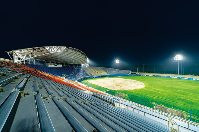 より快適にプレー・観戦が出来る球場にリニューアルされたスタジアムのナイター照明をLED化し、良好な照明環境を創出