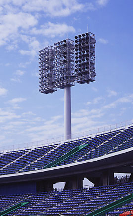 光源は演色性及び経済性を考慮し、メタルハライドランプ1500W×576灯と高圧ナトリウムランプ940W×162灯の8:2の混光照明(色温度:3400K、平均演色評価数:61)としました。また、保安灯としてハロゲン電球1000Wを全体で42灯搭載しています。
