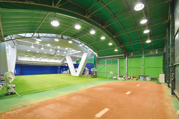 レディオック LEDアイランプSP 170Wでブルペンを照らして空間照度と照度均斉度を向上させ、消費電力の削減に貢献