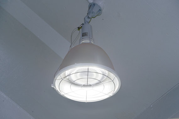 今回の照明改修では、一塁側・三塁側ブルペンとも、高さ約4.5mの場所に設置されていたメタルハライドランプ1000W・400Wと天井用照明器具の組合せを、レディオック LEDアイランプSP 170Wと高天井用照明器具の組合せに更新。低ワットのLEDランプを使用して、器具台数を既存照明より増やしバランスよく配置することで、空間照度と照度均斉度を向上させました。照明環境の向上とともに、総消費電力を一塁側ブルペンで約57%、三塁側ブルペンで約59%削減し、高い省エネ性を発揮しています。