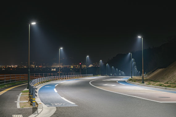 ウエストゾーンにある野球場は、主に大学課外活動(軟式野球部の練習・試合など)のための施設として整備され、夜間照明設備を完備。明るさを軟式野球一般レベル(外野300ℓx、内野500ℓx)に設定のうえ、省エネに貢献する高出力形LED投光器「レディオック フラッド デュエル830Wタイプ」を設置し、明るく快適なナイター照明環境を創出しました。近隣の住宅への漏れ光に留意のうえ、外野へのルーバ設置及び角度調整など、十分な光害対策を講じています。南ゲートからウエストゾーンまでの1.2km間には自動車レーン・自転車専用レーン・歩行者道路がそれぞれ整備され、安全性の向上が図られています。ウエストゾーンに位置する校舎(工学部・農学部・理学部棟)や課外活動施設へのアクセスがよくなり、所要時間が大幅に短縮された、この道を照らす照明器具にはLED街路灯「レディオック エリア アリビオ」の特注仕様が設置されました。
