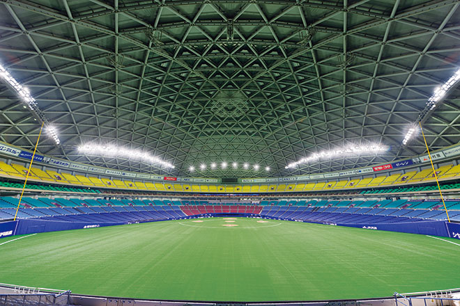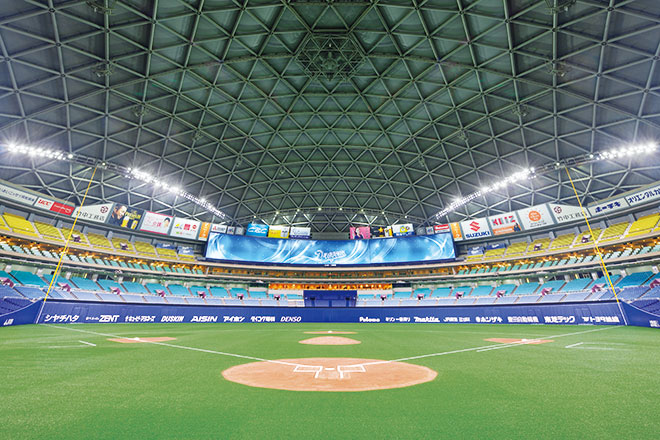 バンテリンドーム ナゴヤは名古屋市東区にあるドーム型球場で、フィールド面積13,200m²、収容人数49,692人(アリーナ使用時最大 2018年3月時点)という規模を持ち、1997年に完成して以来、プロ野球/セントラル・リーグ「中日ドラゴンズ」のホームグラウンドとなっています。野球はもちろん、コンサートや展示会・見本市、運動会をはじめとするさまざまなイベントなどに活用され、名古屋のランドマークとして多くの皆さまに親しまれています。トラス構造による内観の美しさや周辺環境に調和するなだらかな形状などを特徴とする施設は、自然の光を取り込めるよう、屋根中央部が二重ガラスになっていて、ロール式遮光幕「スカイロール」を閉じて暗転することも出来ます。