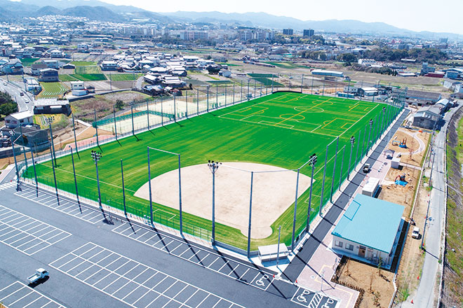 Myリストに追加泉佐野南部公園は、2018年4月、泉佐野市の南部地域に開園した約4haの広さを有する防災公園です。この公園は、万一の災害時には一時避難地・防災支援拠点として、平常時にはサッカーや野球・ソフトボールグラウンド、テニスコートなど、スポーツ・レクリエーションの場となる多目的グラウンドとして利用することが出来ます。防災公園としての活用については、大規模災害発生時には、周辺住民の一時避難地としての利用に加え、防災倉庫による生活必需品の確保、仮設住宅用地、へリポート、自衛隊をはじめとする広域応援部隊の野営地など、災害支援拠点としてさまざまな活用が期待出来ます。また、平常時の多目的グラウンドとしての活用については、人工芝(105m×68m)のサッカーグラウンド1面、両翼85mの野球グラウンド1面、砂入人工芝テニスコート4面を整備し、スポーツ大会の開催など、スポーツ振興を推進しています。