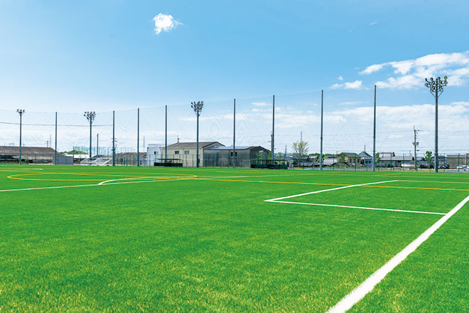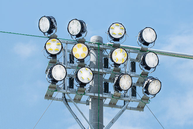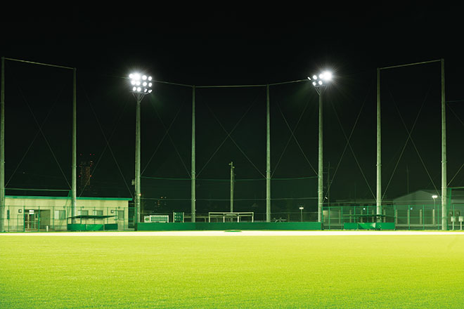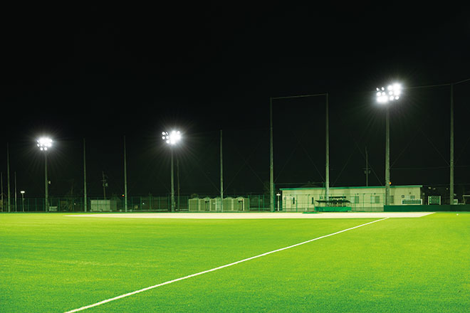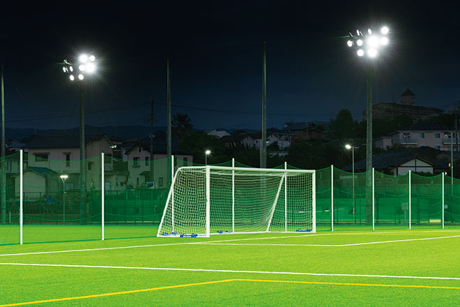 防災公園としての機能を持つ多目的グラウンドに整備されたスポーツ施設をLED照明で照らし、快適なプレー環境を創出