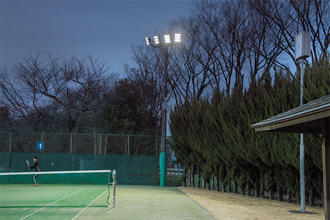 所沢市では、CO₂削減、省エネ推進の観点から、2022年2月、野球場とテニスコートのナイター照明、そして駐車場照明をLED化する工事を実施しました。野球場とテニスコートを照らす光には、既設HID(水銀ランプ)投光器に替えて、高効率形LED投光器「レディオック フラッド アヴァン 400クラス」を選定しました。メタルハライドランプ1000W相当の明るさで大幅な省エネを実現しつつ、良好なナイター照明環境を創出しています。野球場、テニスコートともに、平日は市民のレクリエーションの場として、週末は学校や各連盟主催の大会開催など、幅広く利用されていて、LED照明に更新後は、「とても明るく使いやすくなった」と喜びの声をいただいています。LED照明は瞬時点灯・瞬時再点灯可能で、すぐに明るくなるため、管理上、そして利用される方々にとっても使い勝手がよく、さらなる省エネに貢献する点も評価しています。