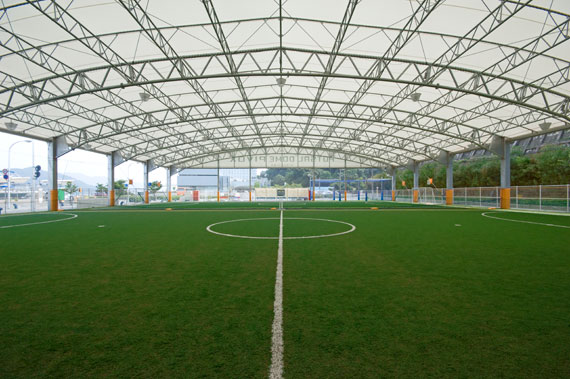 Myリストに追加フットサルドーム・ピヴォックス広島は、広島県南区元宇品町に位置する、天候に左右されずいつでも利用できるドーム型フットサルコートです(2006年12月完成)。屋根は光触媒テントを使用し、十分な明るさを得ながらも紫外線を98%以上カットしています。サッカーの国際大会会場や、欧州の名門クラブの練習場などでも使用されるロングパイルの人工芝「モンドターフ」を使用しており、衝撃吸収にも優れた高品質フィールドです。
