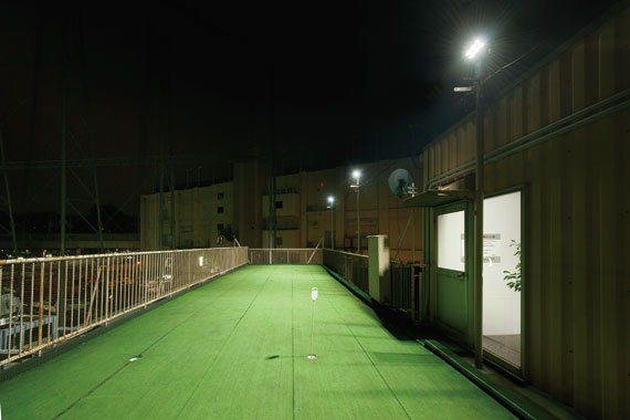 1階のバンカー練習場、屋上にあるパター練習場にも、これまでのメタルハライドランプ400Wに替えてLED投光器「レディオック フラッド ネオ95W」を設置しています。当ゴルフ練習場は、年中無休で3月~11月は朝6時から夜12時まで、12月~2月は朝7時~夜11時まで営業しており、快適なナイター照明のもと、夜間も会社帰りの方など多くのお客さまにご利用いただいています。