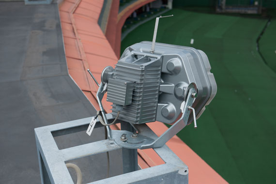 サンスクエアは、スポーツからアミューズメント、ショッピングやグルメなど充実した施設が揃っている総合レジャー施設です。東京都北区の王子駅前と立地条件にも恵まれ、オープン以来40年にわたり地域の皆さまに親しまれてきました。スポーツ施設としては、ボウリング場、テニスコート、バッティングセンター、そしてサンスクエアビルに隣接した敷地内にゴルフ練習場があります。1~3階合わせて102打席、80ヤードのフィールド、100台以上収容可能な駐車場を備えたサンスクエアゴルフ練習場では、2012年6月、ナイター照明施設の改修を実施しました。省エネの観点から節電を徹底すると同時に、都心に位置するレジャー施設として環境に十分配慮した照明環境とするために、既設のメタルハライドランプ1kWに替えてLED投光器「レディオック フラッド ブリッツ」を10台設置。既設照明と同じ灯数でこれまでと同等の明るさを維持しながら、消費電力約60%削減を実現しました。光束維持時間40000時間と長寿命である点、瞬時点灯が可能である点などの特長を持つLEDの光は、省メンテナンスにも貢献してくれるものと期待しています。設置にあたっては、鉛直面照度も確保し、均斉のとれた明るさでフィールドを照らし出すよう空間の明るさに留意し、岩崎電気の担当者とともにシミュレーションによる検証及び点灯実験などを行ったうえで採用に至りました。