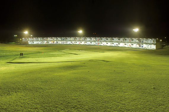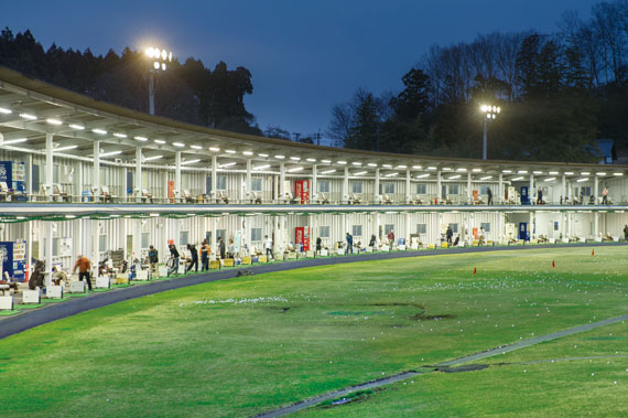 当ゴルフ練習場は、年中無休で日の出から夜10時まで営業しており、省エネと明るさを両立した快適なナイター照明のもと、夜間も多くのお客さまにご利用いただいています。