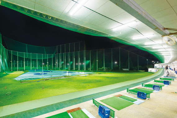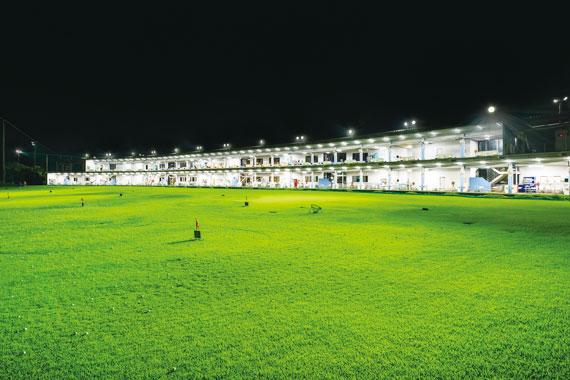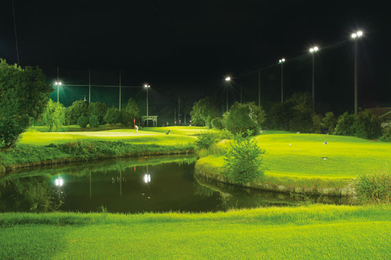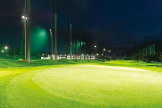 ショートコースを完備し、充実した設備を誇るゴルフ練習場の照明をLED化し、省エネと打球の軌跡が見やすい良好な光環境を実現