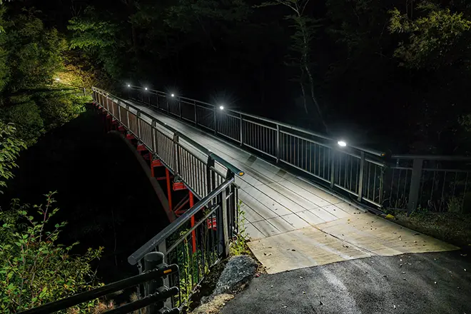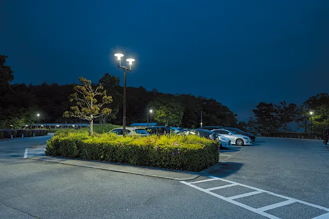 武庫ノ台ゴルフコースは、羽束山を中心とする北摂連山をのぞみ、三田平野を眼下に見下ろす最高のロケーションにある関西屈指のパブリックコースです。アウトコースは各ホールとも、松林などでセパレートされ、コース幅も十分にあるタフなホールが多く、インコースは正確なショットが要求される戦略性に富んだレイアウトで、上級者から初心者までお楽しみいただけます。武庫ノ台ゴルフコースでは、2025年3月より、ナイトゴルフの営業を開始しました。夜間照明設備については、コースを照らす照明としてLED投光器「レディオック フラッド アヴァン 400クラス」を設置いただくとともに、「レディオック フラッド ネオ フルカラー」を用いてのカラー演出、コース間には「レディオック レクト」、駐車場照明には「レディオック エリア トリカ-エル」などをご採用いただきました。