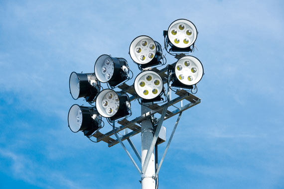高出力形LED投光器レディオック フラッド デュエルでグラウンドを明るく照らし、省エネ推進と快適な視環境を両立