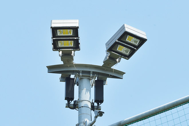 野球場及び多目的グラウンドには、既設HID投光器に替えて高出力形LED投光器「レディオック フラッド デュエル」を設置し、照明柱や架台はそのまま使用して施設の印象を変えることなく整備を行いました。HIDランプの白い光はぼんやりとした印象でしたが、LEDのはっきりとした白色になったことで施設全体が明るい印象となりました。明るさについては従来と同程度ですが、調光が可能なため、保守率を考慮した照度を採用しました。そのため長期にわたり明るさを保つことが可能になります。これまでは点灯に時間がかかってしまい、利用者をお待たせしていましたが、LED照明に更新したことで即時点灯が可能となりました。フットサルコートについても、既存の照明ポールを活用するという条件のもと、「レディオック テニスター」を設置してLED化し、施設の印象を変えることなく整備を行いました。野球場及び多目的グラウンド同様、即時点灯が可能となり、利用者から高評価を得ています。