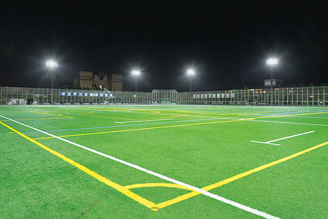 Myリストに追加江戸川区臨海球技場は、東京都江戸川区にある多目的競技場で、東京メトロ西葛西駅、JR京葉線葛西臨海公園駅より徒歩20分の場所に位置しています。葛西水再生センターの上部5万m²を利用して、少年野球場4面(一般利用の場合は2面)、全天候型・人工芝の多目的グラウンド2面(サッカー2面、ラグビー・ラクロス・アメフトなど1面)、フットサルコート2面など充実した施設を備えています。江戸川区では、2017年12月から2018年3月にかけて照明設備改修工事を行い、省エネルギー化に貢献し、電気料金の削減が図れる点、またランプ交換の費用や手間がかからない点を考慮のうえ、ナイター照明のLED化を実施しました。