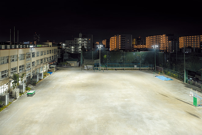 足立区では、生涯スポーツ・生涯学習活動の振興と地域に開かれた学校づくりの促進を図るため、学校運営上支障をきたさない範囲で小・中学校の施設を広く区民の皆さまに開放しており、同小学校も夜間校庭開放施設として指定されています。子どもから大人まで、さまざまな用途に利用される施設照明であることに留意し、設計照度も300ℓxと十分な明るさを確保しました。LEDに更新後は改修前に比べてとても明るくなったと同時に、光害及びグレアを抑制し良好な視環境とすることができたと考えています。