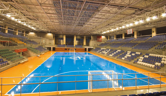 アジア初のフットサル専用アリーナであり、外観はコロシアムをイメージし、メインアリーナには国際規格である20m×40mのフットサルコートが1面配置されています。観客席はコートに近接して配置されているため、迫力のあるプレーを間近に感じながら観戦することができます。その他にもサブアリーナ、プレスルーム、レストランやオフィシャルショップなども併設され、選手にも観客にも魅力的な設備が整っています。