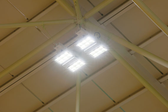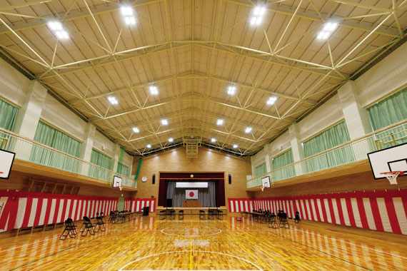小学校の屋内運動場にLED高天井用照明器具を導入し、大幅な省エネを実現