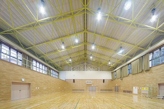 地域密着型の施設として誕生した総合体育館を省エネに貢献する光で明るく安全に照らし出す
