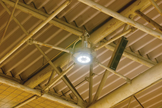 高効率・高出力のLED高天井用照明器具で体育館を快適に照らし、大幅な省エネを実現