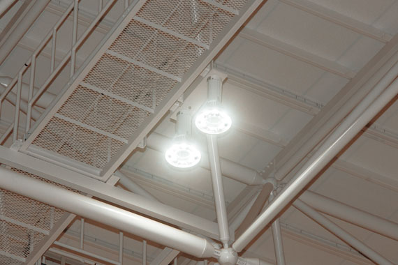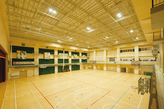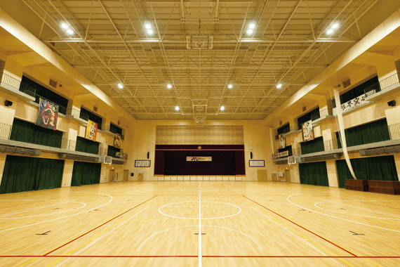 LEDの光で屋内運動場アリーナを照らし、軽量化・メンテナンス性にも配慮した安全で快適な照明計画を実現