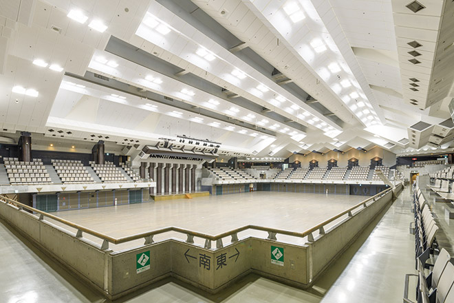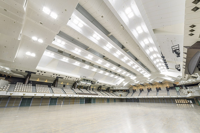 再来年に開館30周年を迎える東京武道館では、老朽化した施設の改修工事の一環として、電気設備関連の改修工事を行い、大武道場の照明LED化改修を実施しました。大武道場の広さは競技面積1,972m²(34m×58m)と東京武道館で最大の武道場で、1,728席の観覧席を備え、柔道・剣道などの武道種目はもちろん、バレーボールやバドミントン、卓球など、屋内でのスポーツやレクリエーションに幅広く利用されています。