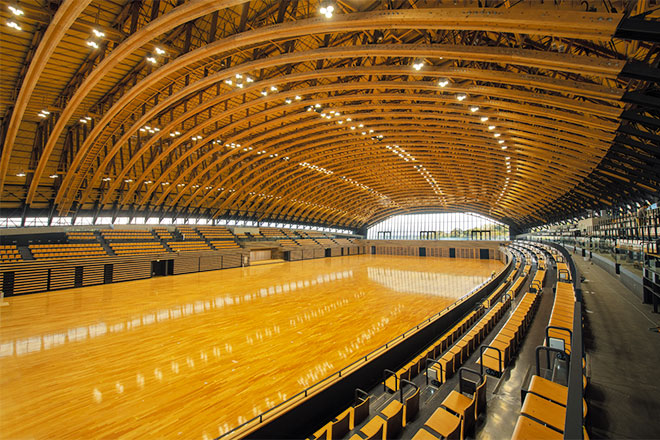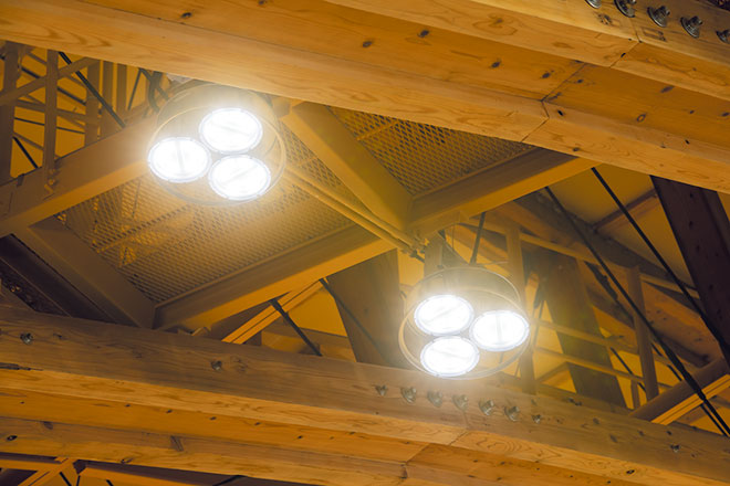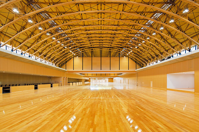 木の香りに包まれた品格あるスポーツ施設をフレキシブルな点灯パターンが可能な照明で照らし、質の高い照明環境を創出