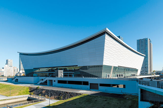 有明アリーナは、国際大会を含むスポーツ大会や各種イベントなどに利用できる15,000席(仮設席含)を備えたメインアリーナ(約4,100m²)と、各種スポーツ利用や、小規模な式典・イベントなどに利用できるサブアリーナ(約1,400m²:全面利用時)からなる、多目的アリーナ施設です。東京の新たなスポーツ・文化発信拠点として、豊洲・お台場に隣接する有明北地区に2019年12月竣工しました。フロア構成は、1階にメインアリーナ、サブアリーナ、選手用諸室、記者室などを配し、2~4階はコンコース及び観客席などの配置となっています。