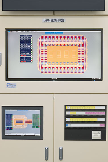 有明アリーナは、スポーツのみならず、コンサートや文化イベントなど多様なエンターテインメントを提供する場でもあります。照明制御システムについては、メインアリーナでは、DMX制御にて細かい調光ができるため、今後開催されるイベントの主催者に対応する調光が可能となる見込みです。照明制御盤は中央監視システム(BACnet)と連携し、使用目的に合わせた柔軟な運用を可能にしています。サブアリーナ照明は、カメラセンサの設置により昼光量を検出し、外光からの明るさによる照度補正を行うことで減光制御を行い、省エネルギー化を図っています。ウォーターフロントの景観と調和し、凹面状に反った屋根形状が特徴的でダイナミックな印象を与えている施設外観を照らすライトアップについては、多彩な色の光を表現できるフルカラーLED投光器「レディオック フラッド フルカラー」を光源に選定しました。アウェアネスカラーをはじめ、四季を感じることのできるカラーや、さざ波状の凹凸を持つ白色の外壁面を美しく表現できるような電球色、白色カラーなど、さまざまなカラーバリエーションを設定しています。タブレットで操作できるIoT照明制御システム「Link-Core(リンクコア)」の採用により、オンオフを簡単にできるので、複数の職員によるローテーション勤務の場合など、専門の担当者でなくても各々がワンタッチで操作をすることができました。壁に取り付けの操作盤の場合は、外で点灯を確認する人と屋内でスイッチを押す人の最低2人が必要になりますが、タブレットは場所を取らず、点灯時間の直前に持ち運びをして、担当者1人でも現地で色や点灯の確認を即座にできることが便利でした。有明アリーナという建物屋根の稜線の反り、傾斜した壁から生み出された形状などの建物の特性がライトアップによって際立ち、より美しく陰影を表現できていると考えます。また、水辺に囲まれた立地特性をいかし、有明を意味する清々しい夜明けや明け方に存在する月の光のように、水辺に映える優しい光となっています。近隣住民にも配慮した光環境の整備により、有明を含め東京の魅力的な夜間景観の創出に磨きをかけていきたいと思っています。