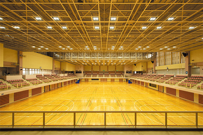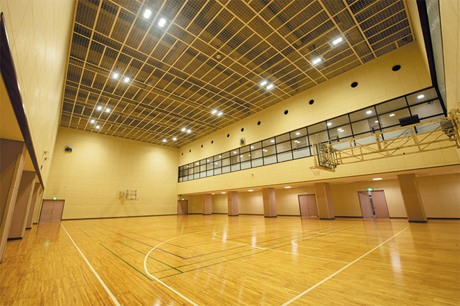 プロスポーツ競技の開催にも対応する高品位なLED照明で総合体育館を快適に照らし出す