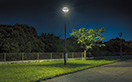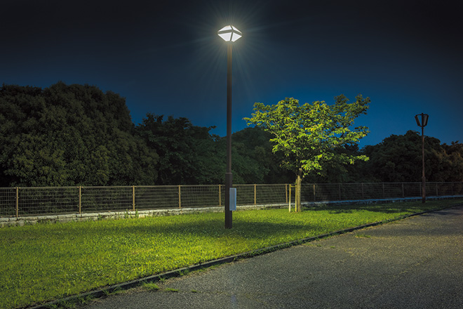 園路など、屋外の照明については、総合運動公園内に設置されている街路灯を流用し高効率LEDランプ「レディオック LEDライトバルブ」へ交換、また、既設ポールを活用できるLED街路灯「レディオック エリア トリカ-エル」、軽量・コンパクトな歩道照明用配光のLED道路灯「レディオック ロード エス」をご採用いただき、夜間も園路を明るく安全に照らしています。