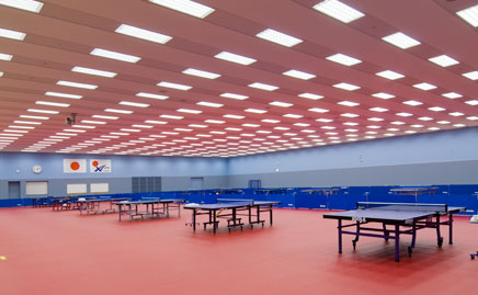 ナショナルトレーニングセンターは、屋内/屋外トレーニング施設・屋内テニスコート・宿泊施設を備えた国内でもトップレベルの総合トレーニング施設です。2008年に開催された北京オリンピックにおいてナショナルチームの強化練習・直前合宿など日本のスポーツ競技の拠点ともなり幅広く活用されました。快適な照明環境のため全体を1000から1500ℓxの高い照度を維持し、トレーニングの妨げにならないようにグレア(まぶしさ)対策も十分配慮されています。