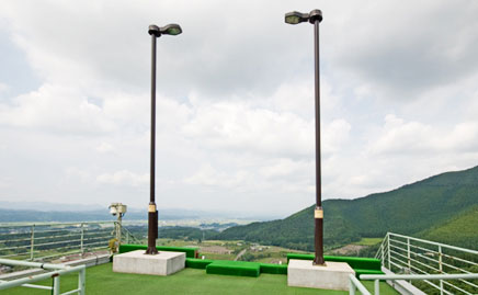 ノーマルヒル、ミディアムヒル、スモールヒルの3つのジャンプ台を併設し、全日本スキー連盟のルールに適合した施設を持つ花輪スキー場では、サマージャンプの夜間練習用として、ノーマルヒル、ミディアムヒルにナイター設備を設置しました。
