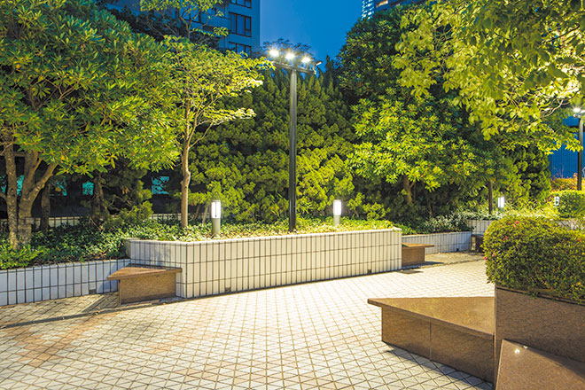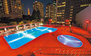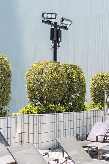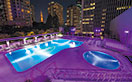 時間の経過とともに表情を変えるプールサイドの演出には、LEDフルカラー投光器「レディオック フラッド フルカラー 120Wタイプ」をご採用いただき、DMXコントローラに保存した照明演出プログラムにより多彩な色の光で空間をより魅力的に演出しました。