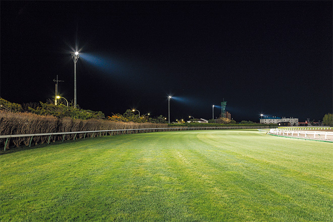 風光明媚な北の大地にある競馬場の調教用照明として「レディオック フラッド ゼスト」を設置し、省エネと良好な照明環境を両立