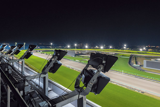 冬期も遅い発走時刻のレース開催を可能にした馬場照明増設工事