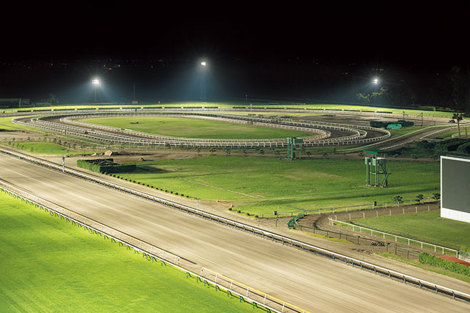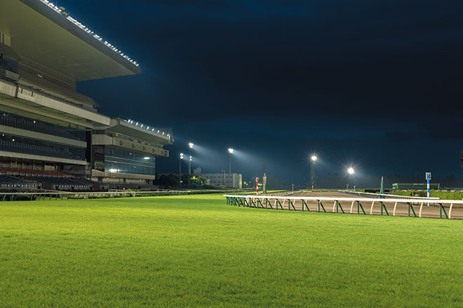 まぶしさを抑制したLED投光器で発走時刻を繰り下げた夏季レースを快適に照らす
