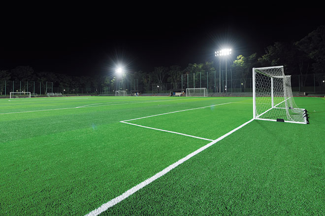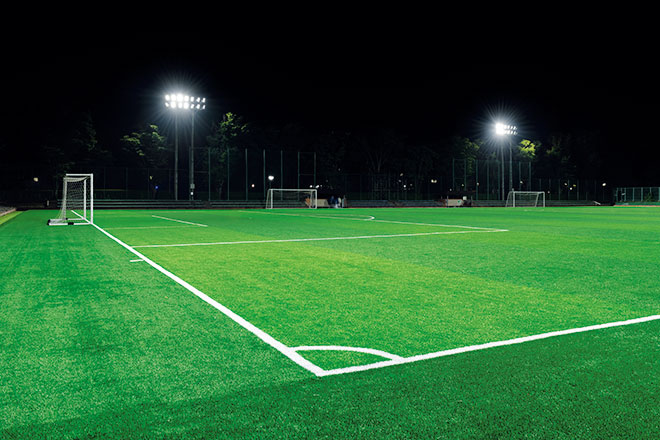 蹴球部だけではなく、女子サッカー部や少年少女サッカーなどにも使用されている第一サッカー場を明るく均一に照らし出し、夜間も快適にプレーができる良好な照明環境を創出しました。