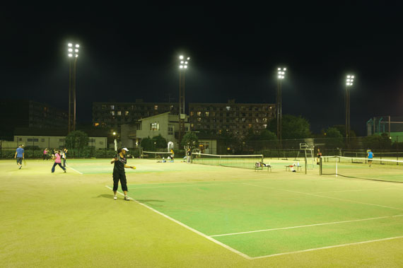 省エネに貢献するLEDの光で夜間もテニスコートを快適に照らし出す