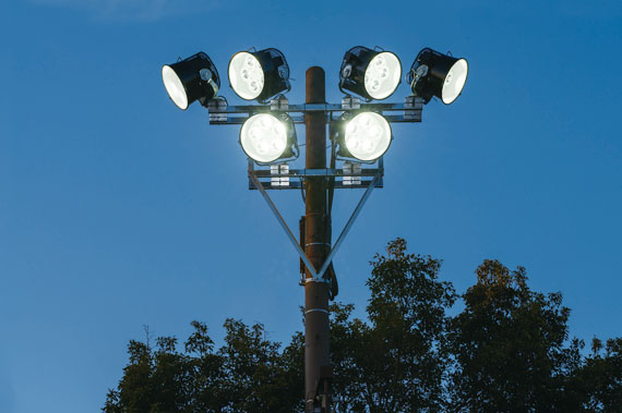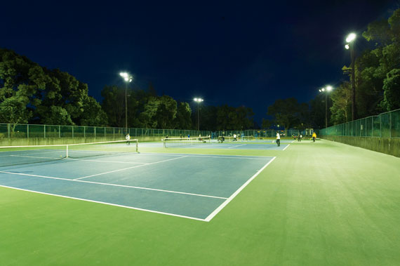 高出力形LED投光器でテニスコートを照らし、大幅な省エネと照度アップを実現