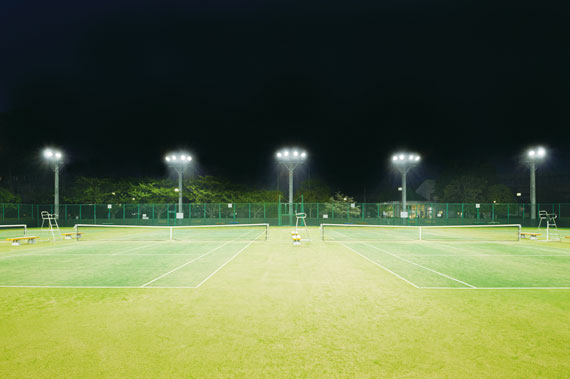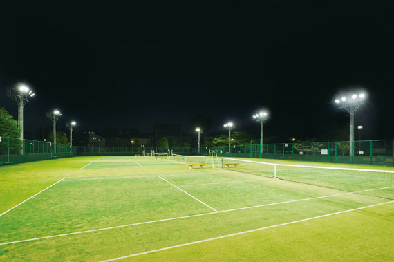 高出力形LED投光器(レディオック フラッド デュエル)でテニスコートを照らし、省エネに貢献する質の高い照明環境を実現