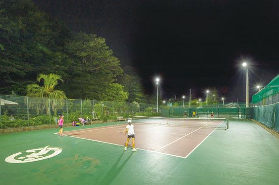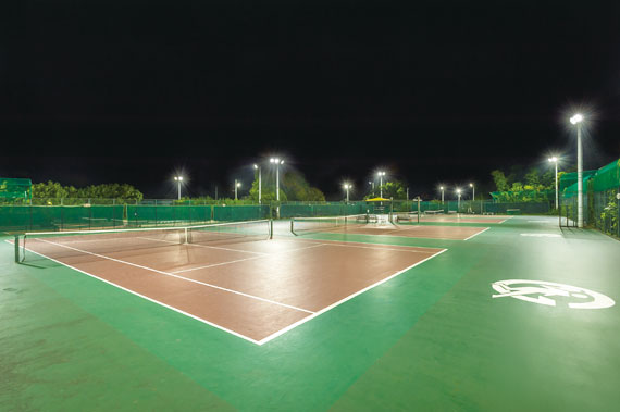ハードコート10面をレディオック フラッド デュエルで照らし出し、省エネに貢献しつつ明るく快適なナイター照明を実現