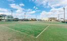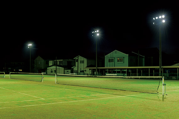2014年10月には、テニスコート5面がある多目的グラウンドの照明設備をLED照明に更新する工事が実施されました。既存照明はコンクリート柱8基に水銀ランプ400W投光器が34灯、後付け(既存400W入れ替え)で水銀ランプ1000W投光器6灯が設置されていました。今回の改修工事で、水銀ランプ400W相当の明るさを達成するLED投光器レディオック フラッド スポラート130Wタイプに全て更新し、既存40台から2台増設して全部で42基設置。省エネ推進及び消費電力の削減に貢献するLEDの光で既存照明と同等以上の明るさを確保し、環境に配慮した明るく快適な照明環境をつくり出しています。
