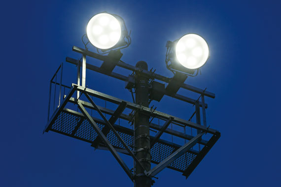 これまでの水銀ランプ1kWを光源としていたテニスコート用低ポール照明器具に替えて高出力形LED投光器「レディオック フラッド デュエル650Wタイプ」×2灯用のコンクリートポールを設置。省エネに貢献する光で明るさを維持し、均斉度の高い良好な視環境をつくりました。低誘虫性光源のLEDは虫の飛来を抑制することが出来る点、また、瞬時点灯・消灯が可能なため必要に応じてより効率よくナイター照明を点灯することが出来る点も利点と言え、夜間もテニスコートを安全・快適に照らしています。