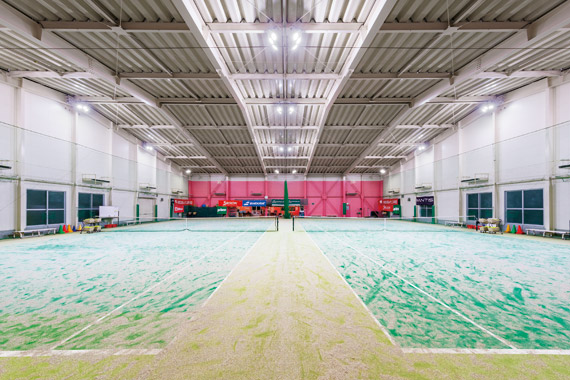 地域に親しまれてきた歴史あるスポーツセンターのインドアテニスコートをインドアテニスコート専用LED照明器具で照らし、快適な照明環境を実現